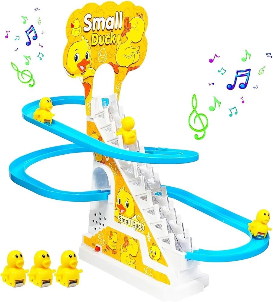 Small Duck Climbing Stairs Track Toy Set with Musical Effects