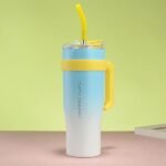 1200 ML Sipper Tumbler with Steel Straw and See-Through Leak-Proof Lid | Stainless Steel Water Bottle for Hot and Cold Beverages | with Handle & Car Cup Holder