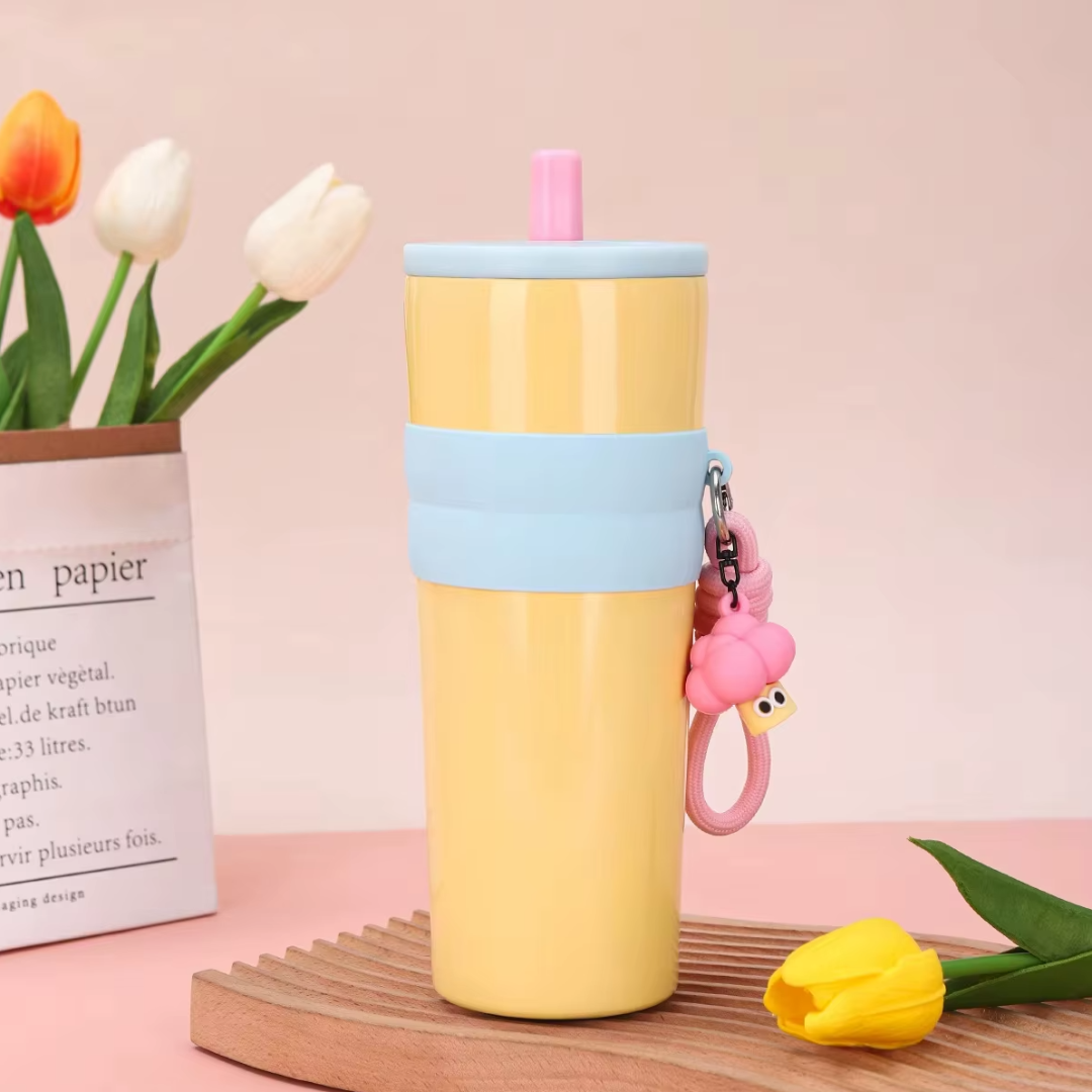 710ml Stainless Steel Water Bottle with Straw & Carry Strap | 316 Steel Vacuum Insulated Flask | Hot & Cold Leak-Proof Sports Travel Mug for Gym, Office, Outdoor & Car Use (Yellow)