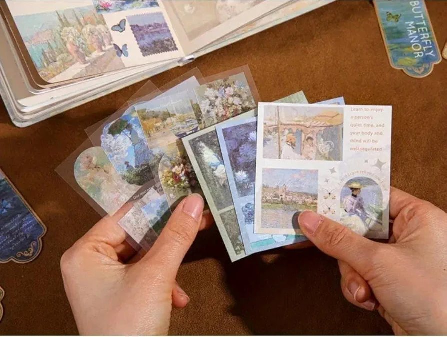 LARGE AESTHETIC SCRAPBOOK KIT:- Each kit contains a gorgeous gift box 13*8.7 inches. Contains a premium B6 oil painting aesthetic style notebook, a full color inside page, and 3D title page. 20-sheet Washi & transparent PET stickers 3.15*3.15in. 100 sheets of non-adhesive notepaper with 5 designs 3.15*3.15in. Washi tape: 2*10mm+2*15mm+1*20mm+1*30mm. A gold metal bookmark. If you are a DIY journaling beginner or lover, then this scrapbooking supplies can satisfy all your basic needs.