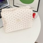This floral quilted makeup bag is designed for those who appreciate a “cozy-chic” or “cottagecore” aesthetic. Its spacious interior and soft-shell structure make it an ideal organizer for cosmetics, skincare, or stationery.