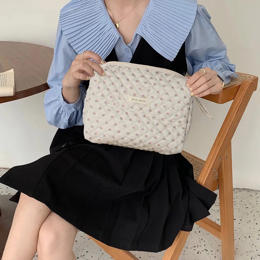 Cotton Makeup Bag Large Travel Cosmetic Bag Quilted Cosmetic Pouch Aesthetic.