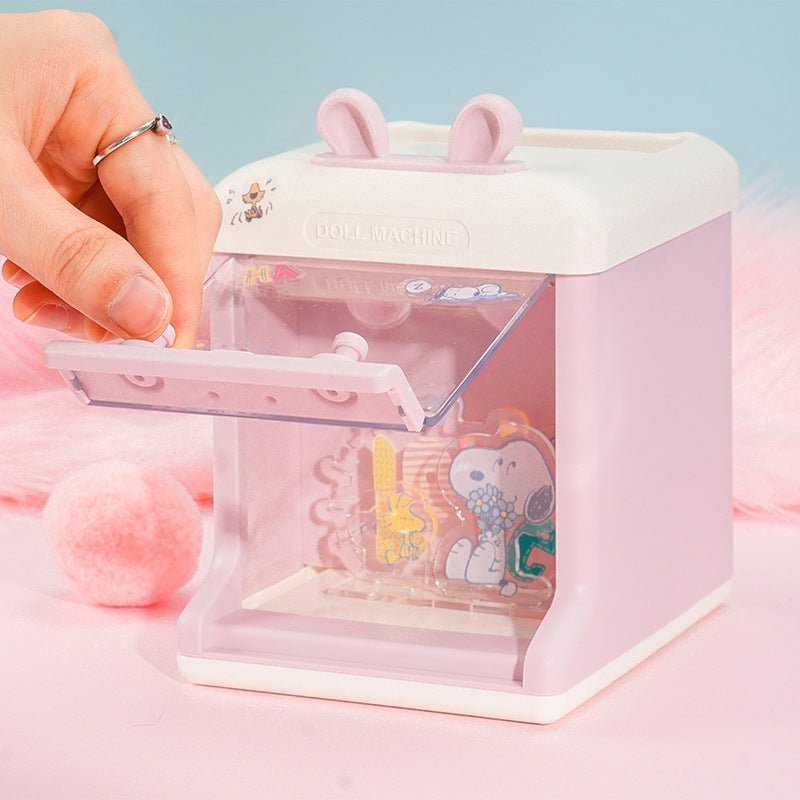 fun and functionality to your desk with this adorable Doll Machine Pen Holder & Storage Organizer! Designed in a mini claw machine style, it’s the perfect mix of cute décor and practical storage for your stationery, making your study or work desk more organized and stylish.
