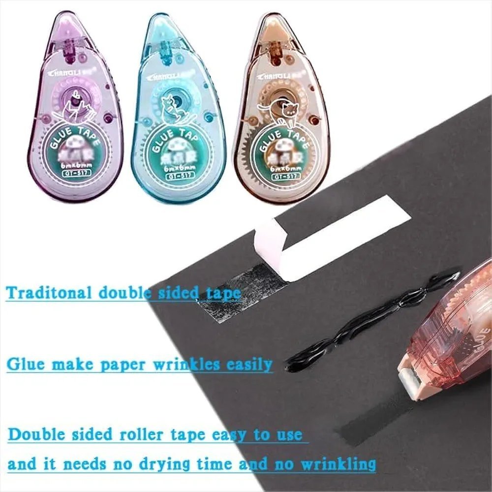 Innovation: Unlike traditional glue or glue sticks that take time to wait, the tape roller is set with built-in rollers, just press the scrapbook tape head obliquely on the paper, pull, and press, and it needs no drying time and no wrinkling.