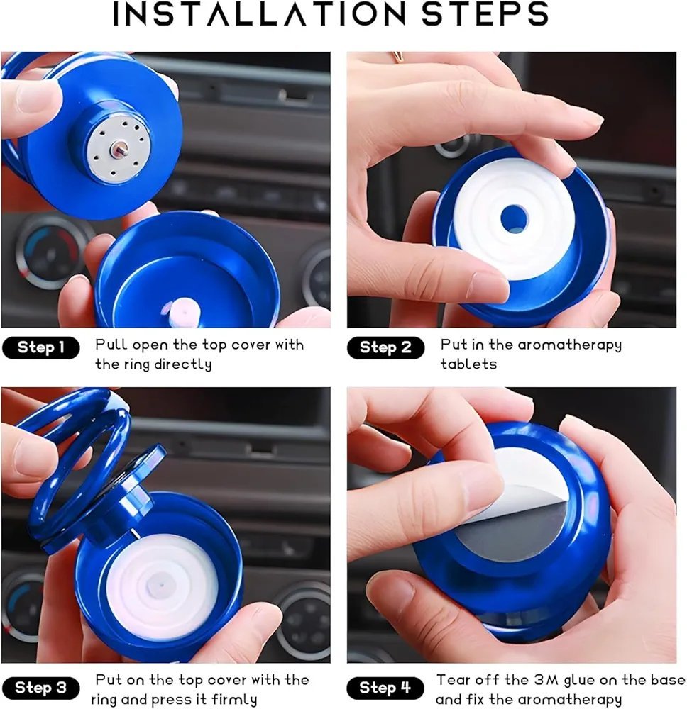 💖Easy to install: unscrew the lid, insert the perfume pad and screw on the lid, tear the tape to fix the air freshener