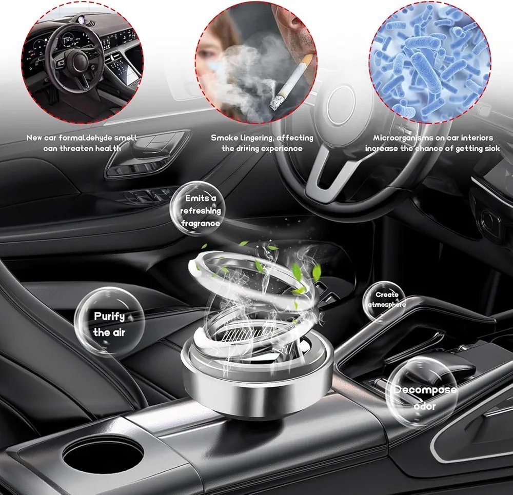 💖Solar Power Air Freshener: directly powered by solar energy, which drives the motor to turn, full of sense of technology, no need for cell, environmentally friendly