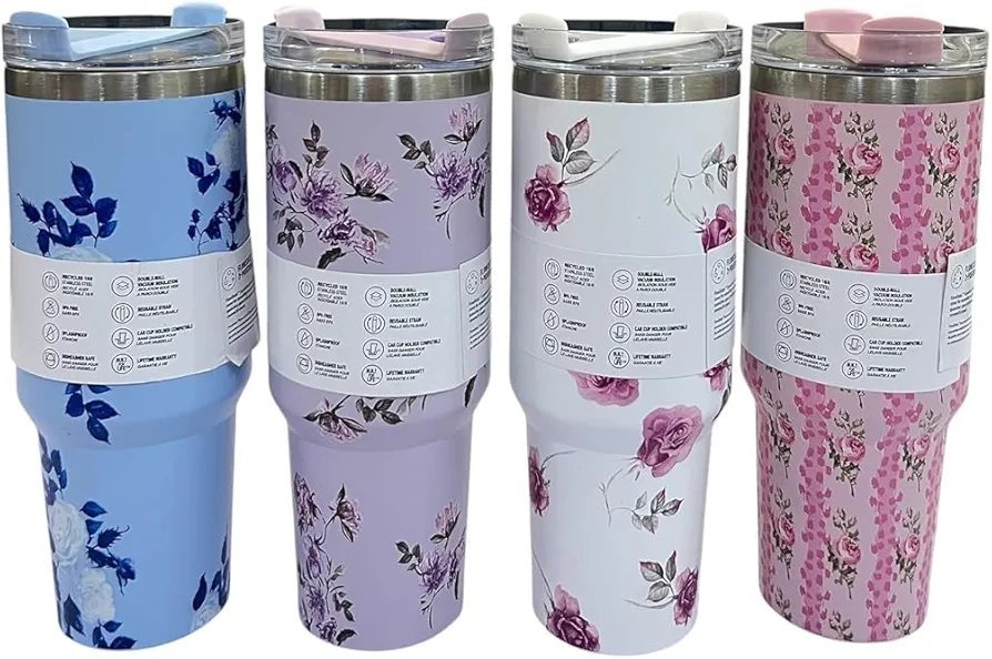 PREMIUM DESIGN: Beautiful floral patterns in various pastel colours with gold-trim accents, made from high-quality stainless steel construction for lasting durability