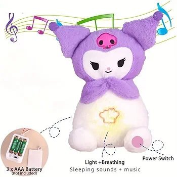 Kuromi Soft Toy Breathing Teddy Bear with Music and Light for Baby Sleeping Cuddly Plush for Babies Kids Soothing Sound and Décor Item Valentine Birthday Gift