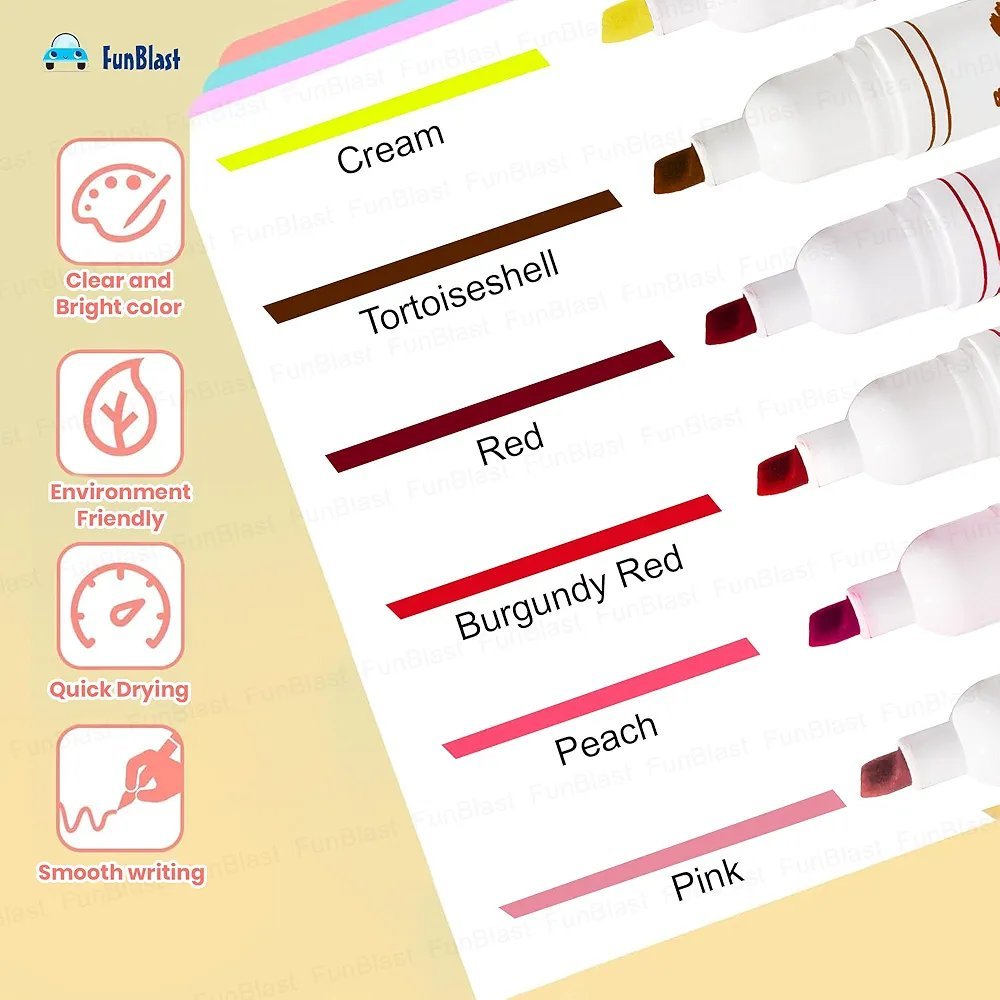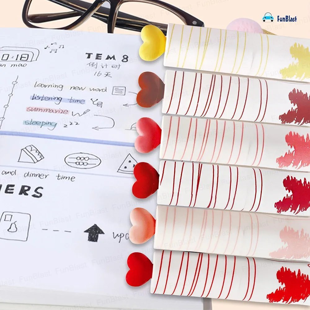 Love Heart Highlighter Set ek cute aur stylish stationery product hai jisme 6 different color highlighters hote hain. Inka design heart-shaped cap ke saath aata hai jo ise attractive aur aesthetic banata hai. Yeh highlighters students, journaling lovers aur planners ke liye perfect hote hain.