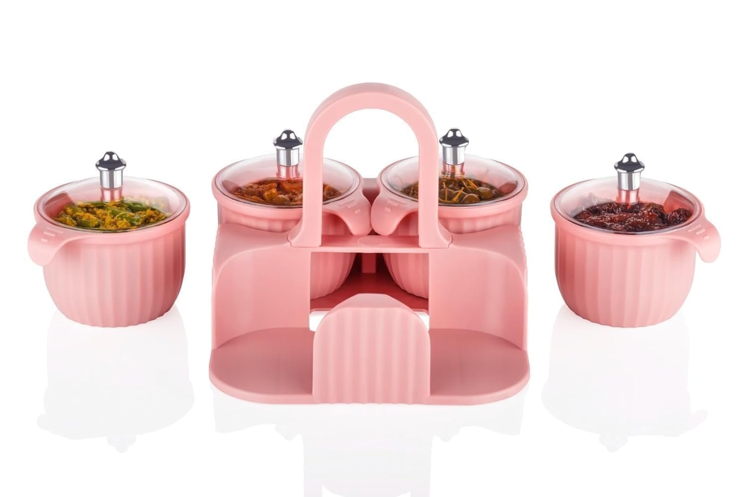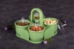 Marvella Multipurpose Dry Fruit Box 4 pc Jar Set Aachar Pickle Container Mukhwas Tray Dining Spice Stand Plastic Chocolate Mouth Freshener Sweets Masala Storage (Multi-Color)