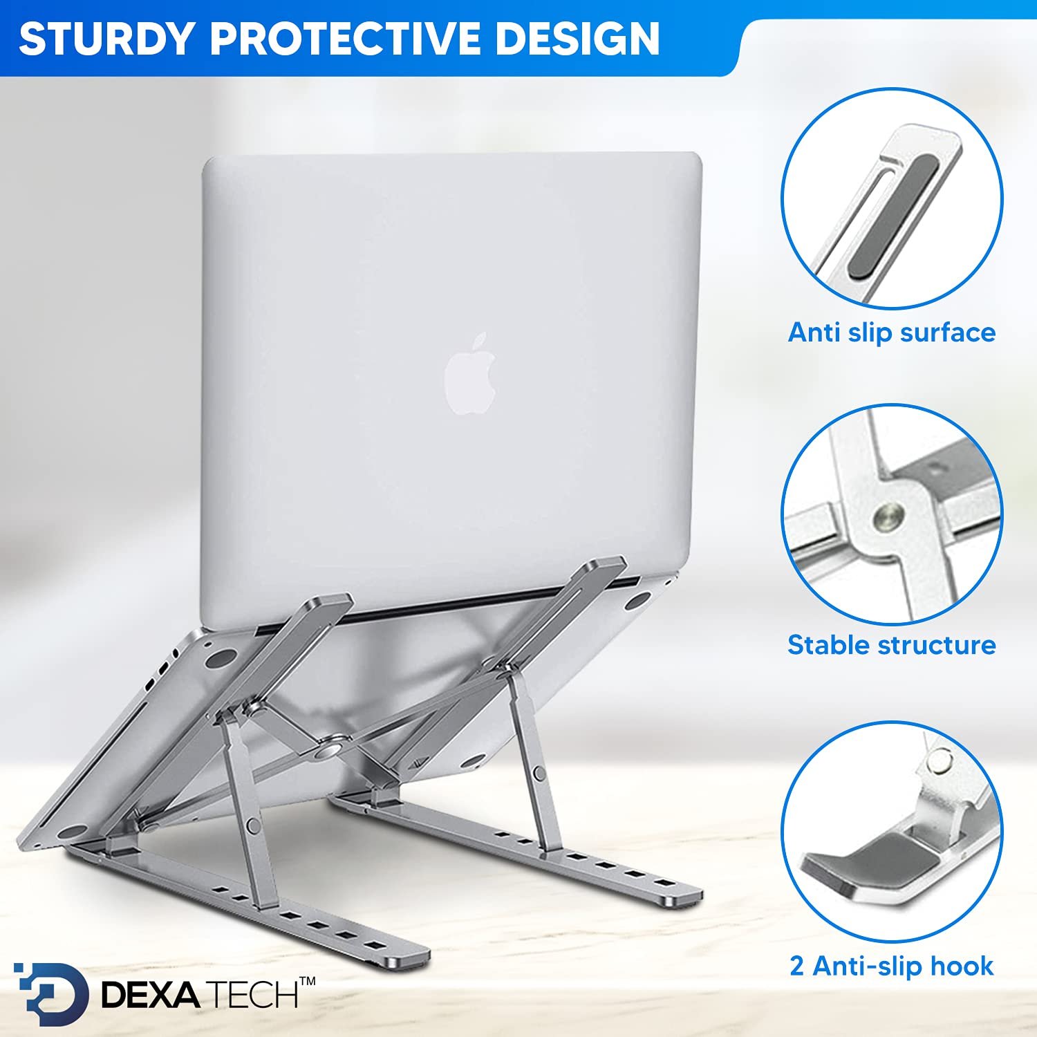 DEXA TECH Laptop Stand – Portable Laptop Holder for Desk, Bed – Adjustable Book/ Phone/ Tablet Stand – Aluminum Laptop Raiser Compatible with HP, Dell, MacBook, Ipad