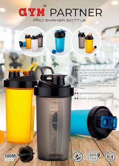 Protein Shaker Bottles with Portable Sports Water Bottle Leak Proof 500ML
