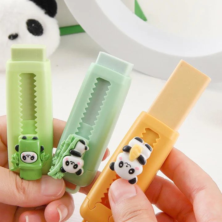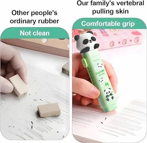 Add cuteness to your stationery collection with this adorable panda-themed push eraser 🐼✨. Designed in a compact and portable case, it features a sliding mechanism that easily dispenses the eraser. The soft erasing material ensures smooth and clean correction without damaging paper.
