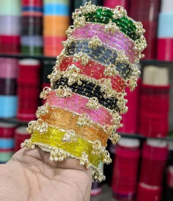 Elevate your jewelry collection with this exquisite set of handcrafted bangles, designed to bring a vibrant touch of traditional elegance to any outfit. This collection features a stunning array of colors, from deep emerald and rich ruby to soft pastels and shimmering neutrals.