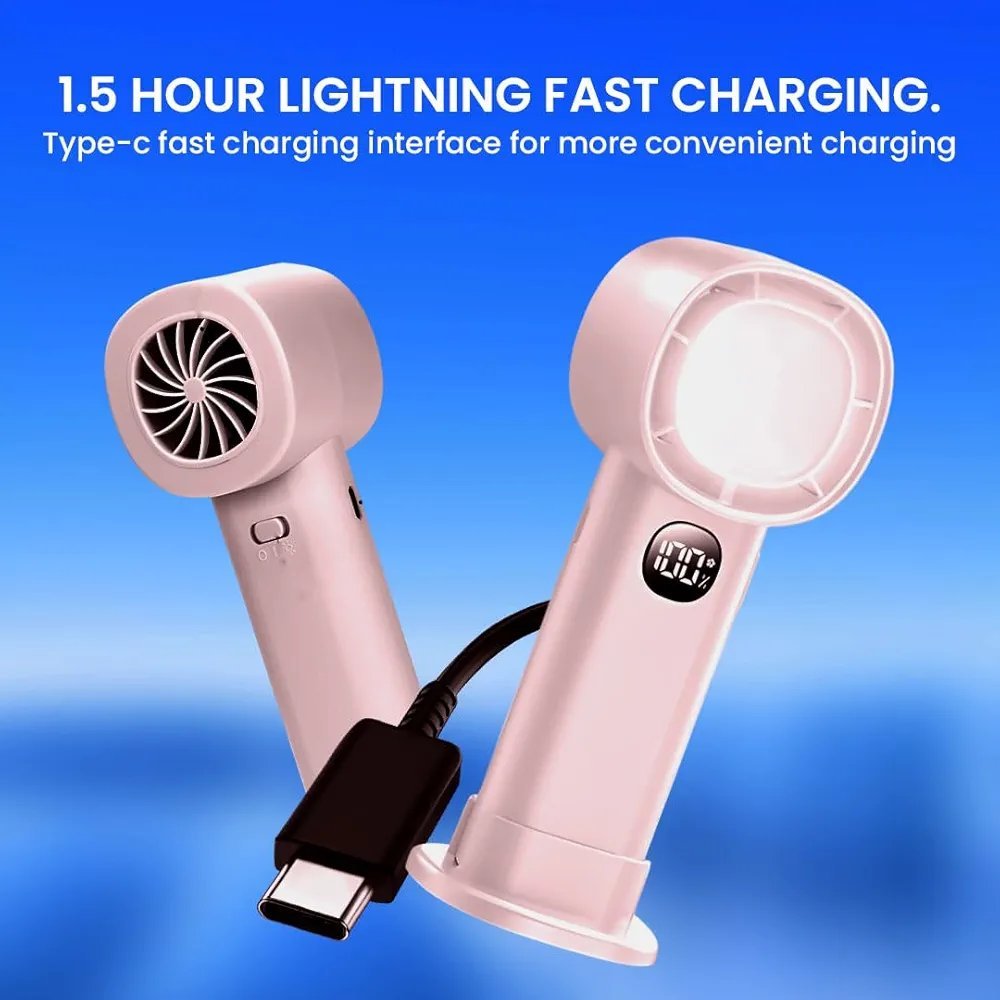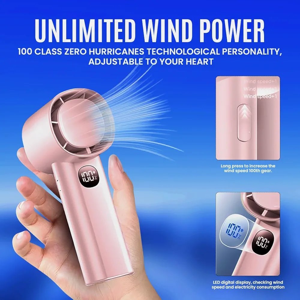 HandHeld Fan, 100 Speeds Portable Fan Electric Hand held Fans USB Rechargeable Fans with LED Light Battery Operated Mini Fan Desk Fans