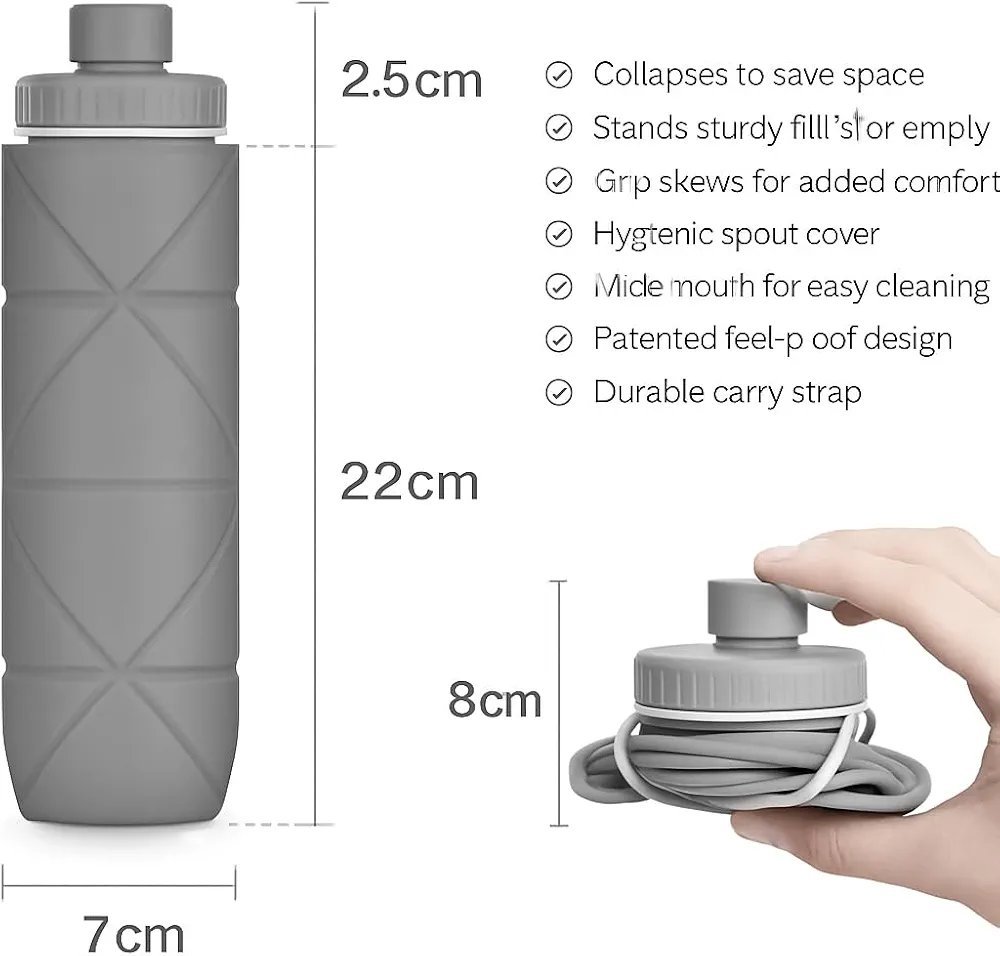 Collapsible & Space-Saving: Easily fold the bottle down to half its size when not in use, saving precious space in your bag or backpack.