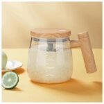 Electric Self-Stirring Coffee Mug Borosilicate Mixing Cup With Lid For Effortless Coffee, Milk, And Protein Powder Mixing At Home, Office, Or Travel (400 Ml, 1 Piece) Glass, Transparent