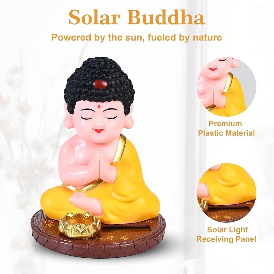 SOLAR-POWERED MOVEMENT: No batteries or wiring needed! The built-in solar panel powers the continuous, soothing wobble movement of the Buddha’s head. A mesmerizing and stress-relieving display powered by any bright light.