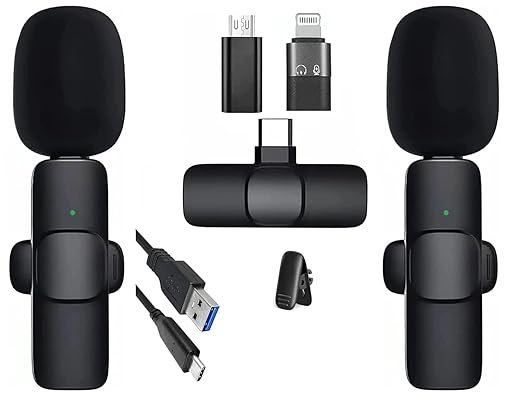 Dual User K9 Wireless Microphone for Type C Mobiles and iPhone Collar Mic for YouTube Video Recording Podcast ASMR Live Videos Interviews and Conferences (k9 Collar mic)